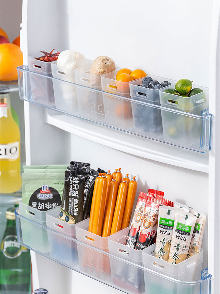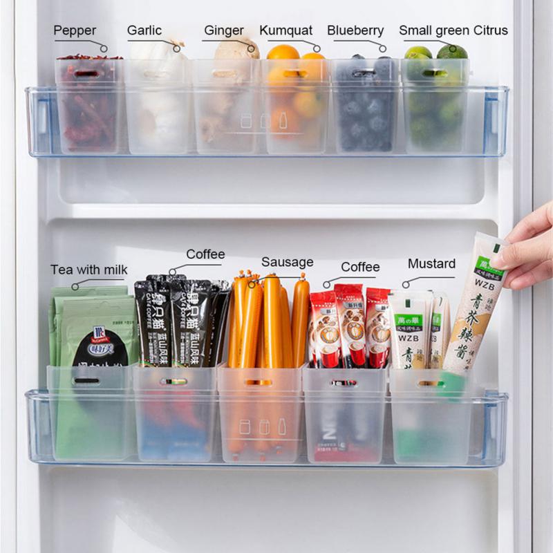 Stay organized in the kitchen with these 2Pcs Refrigerator Organizer Bins! They are designed to utilize the remaining space of your side door and make the most efficient use of available storage in your refrigerator. Made from food-safe PP material, they feature smooth edges and no burrs so you can store all of your favorite foods and ingredients with ease. The snap design makes tidying up easy as well as offers convenience when accessing what is stored inside. With their transparent design, it'll be easy to find any seasoning, vegetable or food item quickly. They are a must-have for anyone looking to get organized and maximize refrigerator storage solutions!